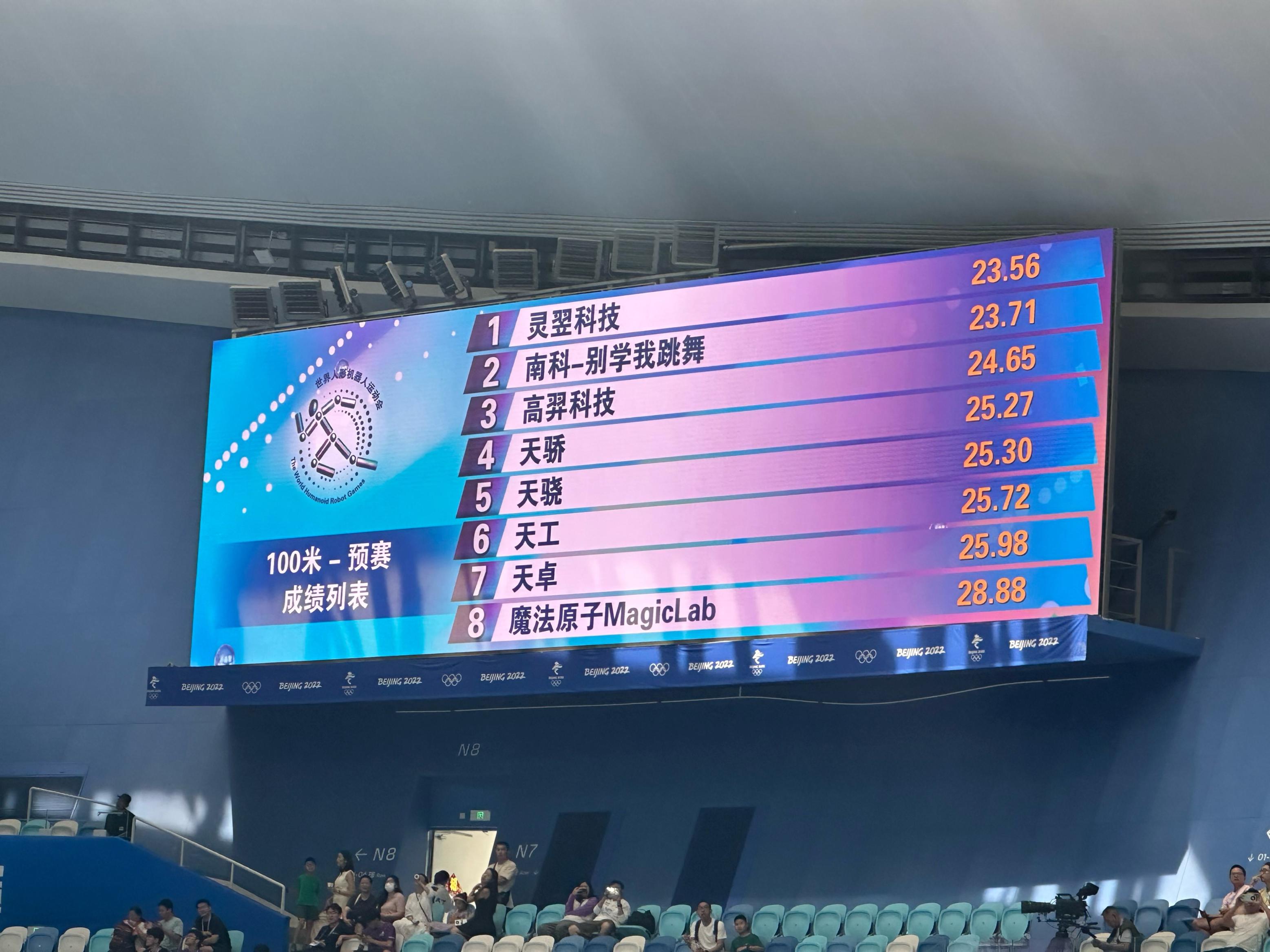 刚刚门户网配资,世界人形机器人运动会“百米飞人大战”的复赛名单公布。100米预赛前七名成绩都在23秒到26秒之间。